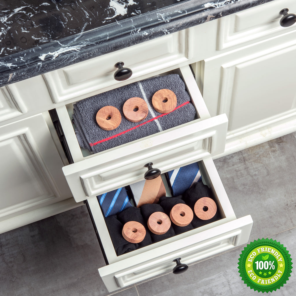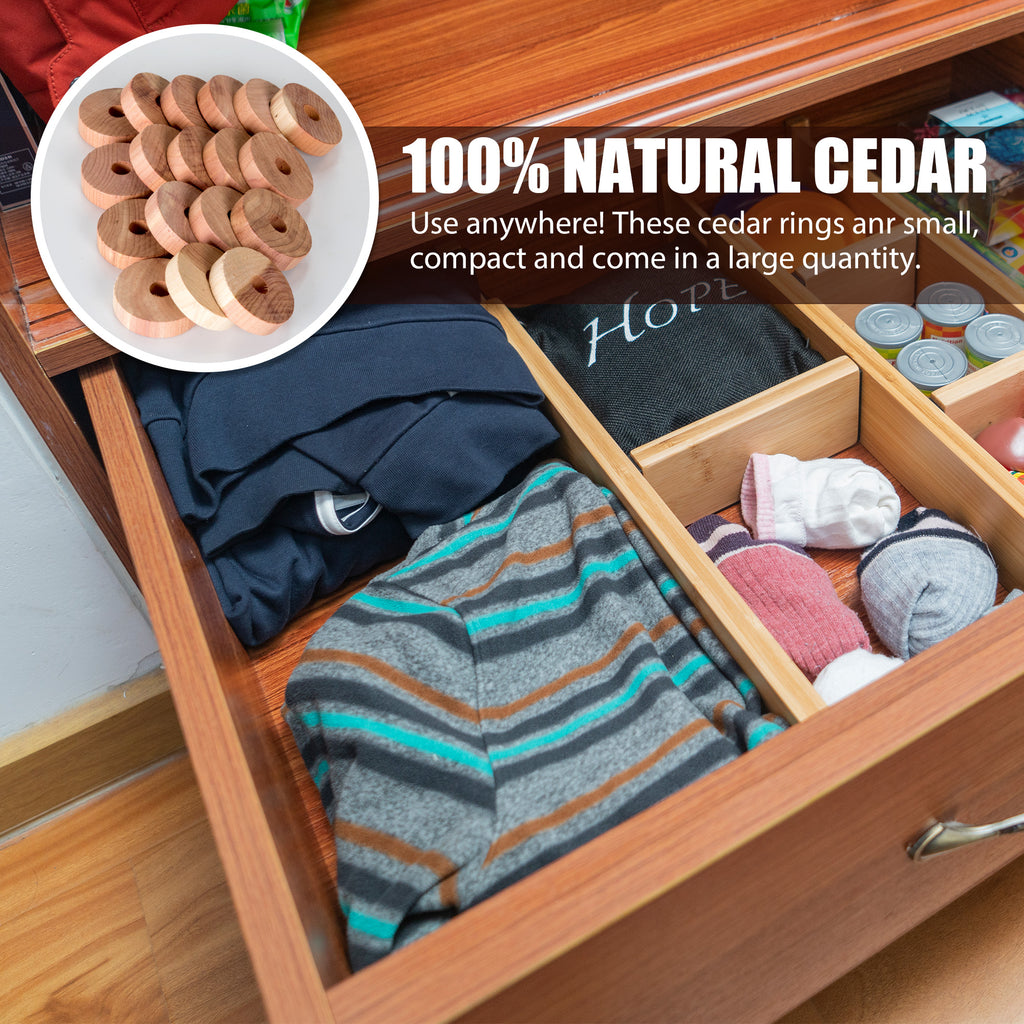 • USE ANYWHERE! These cedar rings are small, compact and come in a large quantity! You can use them wherever you are experiencing issues! Of course, your drawers, closets, and wardrobe are prime spots for moisture and pests! Scatter these rings throughout and see the results in a few days! You won't be seeing anymore! Also great for your car and shoes for deodorizing, There are so many uses you won't be disappointed!